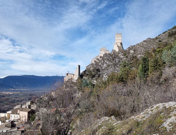 Partiamo dal borgo di Roccacasale con il suo castello medievale dalla particolare forma triangolare che domina tutta la Valle Peligna e, arriviamo al misterioso sito archeologico di Colle delle Fate delimitato dai resti delle antiche mura megalitiche e dal quale lo sguardo spazia sul Monte Rotondo. Poi, seguendo il sentiero che aggira i Monti della Rocca, ci dirigiamo alla Crocella da cui il panorama che si apre davanti ai nostri occhi abbraccia tutta la Valle Peligna, il Monte Genzana e il massiccio del Sirente. Poi proseguiamo fino all’incantevole Valle dei Preti dove, se siamo fortunati, possiamo ammirare il suggestivo Laghetto della Rocca, effimera formazione invernale derivante dallo scioglimento delle nevi, che dona al paesaggio circostante un aspetto quasi alpino.