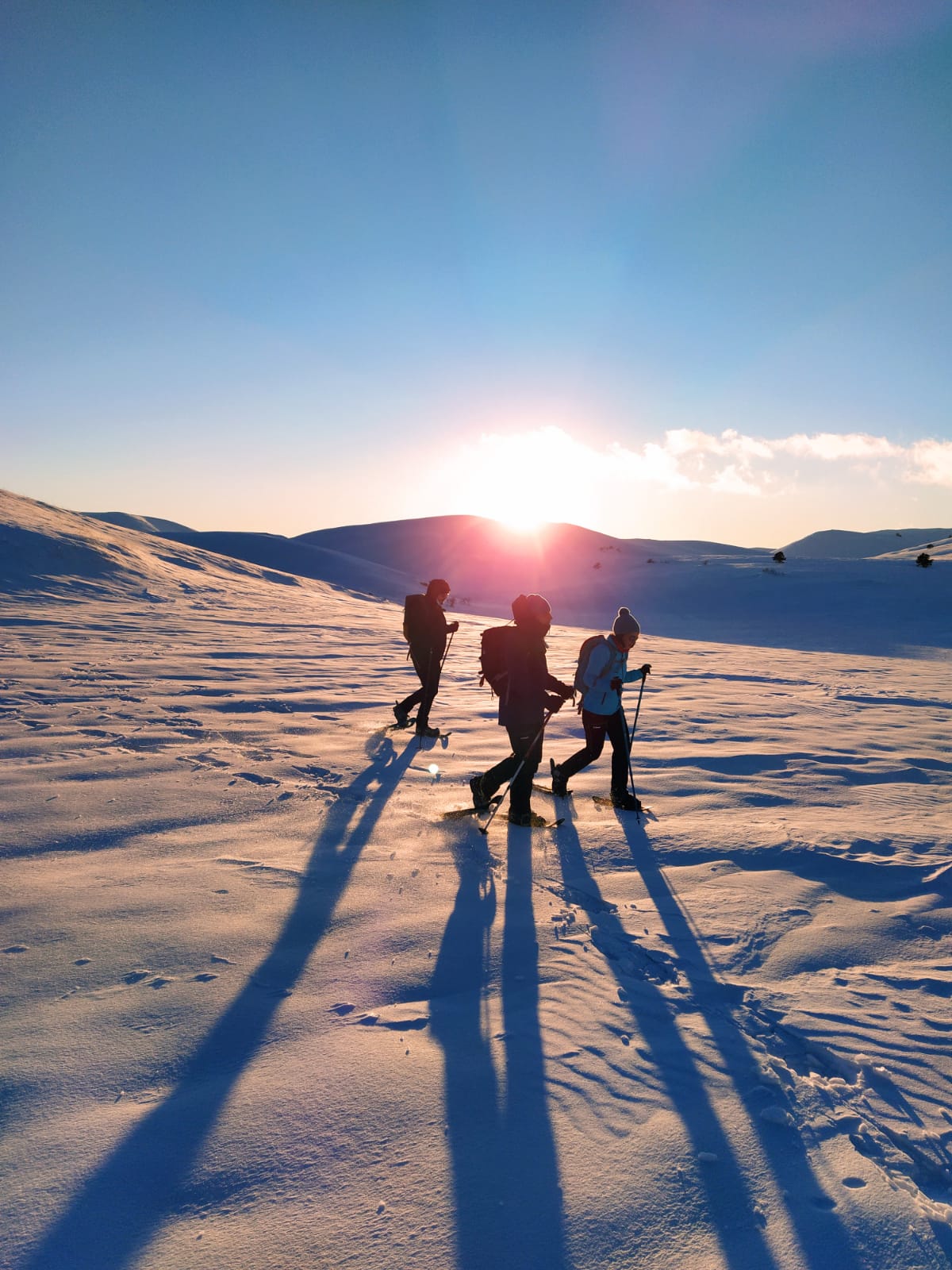 Vivere un’esperienza con le ciaspole ai piedi nelle ore del tramonto quando il limpido cielo invernale si tinge di rosa e poi di rosso acceso, ci lascerà senza fiato…
