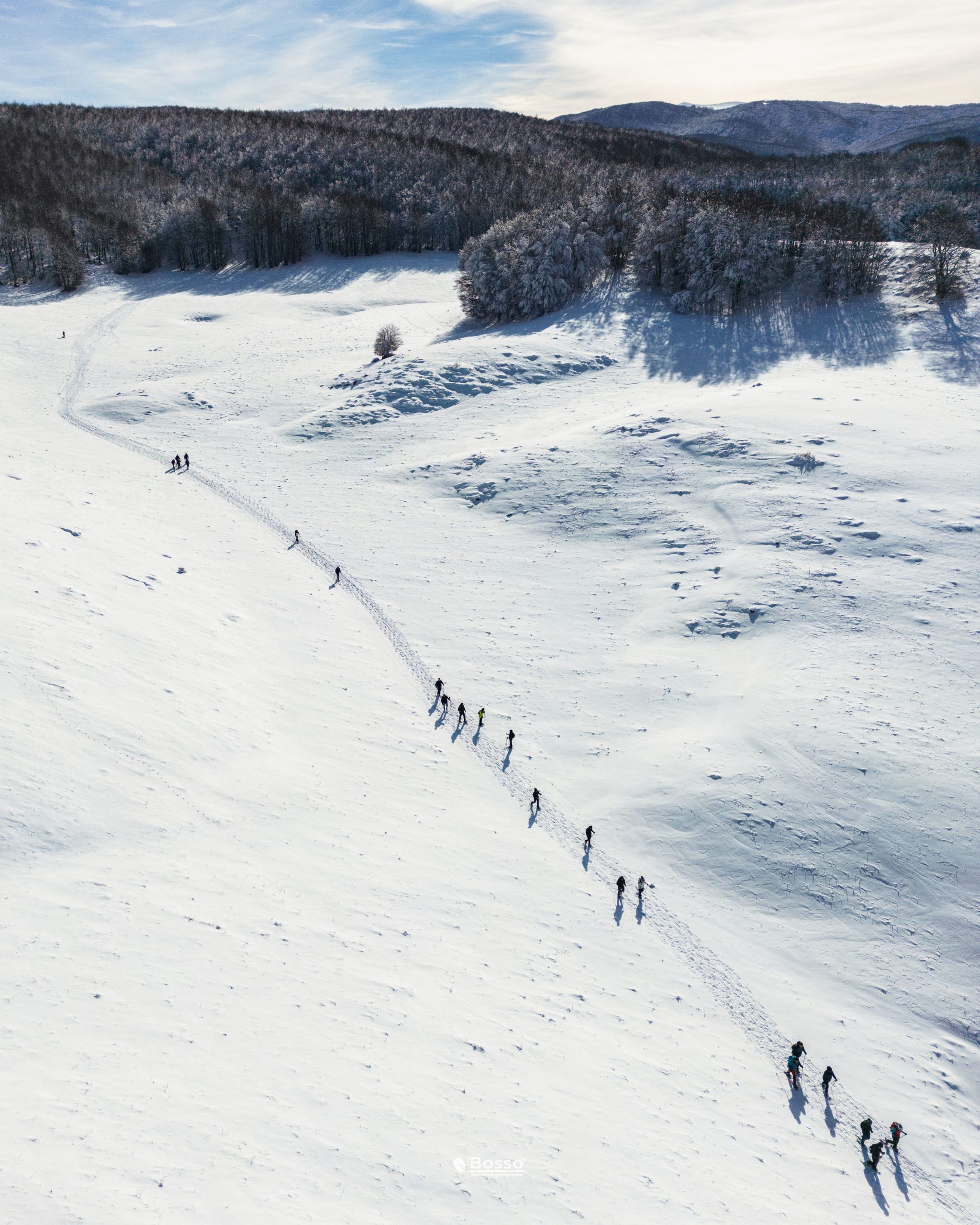 Vi invitiamo a farvi catturare dal silenzio ovattato e dalla bellezza di questi meravigliosi luoghi che, coperti dal candido manto invernale, creano un’atmosfera incredibilmente suggestiva mentre il nostri passi avanzano.