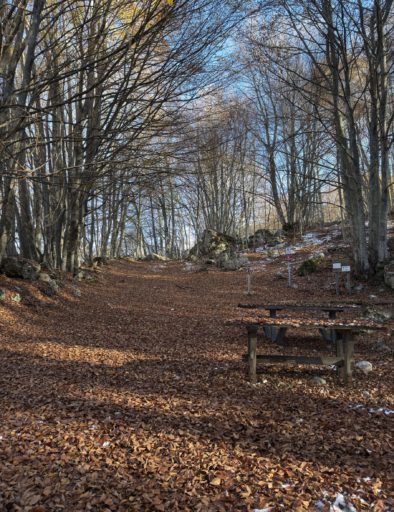 Con un meraviglioso percorso ad anello che passa per le fonti che arricchiscono di bellezza questo bosco, arriviamo al piccolo Rifugio Addiaccio della Chiesa ai piedi della Rava del Ferro, il ripido accesso per Monte Amaro. Qui ci accoglie una fantastica visuale panoramica sul vicino Morrone e sul massiccio del Gran Sasso ma soprattutto un caleidoscopio di colori sui boschi sottostanti…