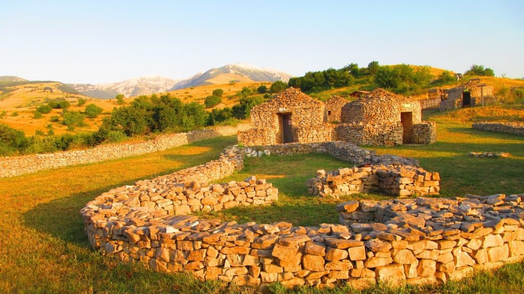 Partiamo da Decontra a monte di Caramanico, in un luogo dove le aree agricole coltivate e i pascoli si alternano alle aree incolte ed a quelle boschive. Attraversiamo gli ambienti agropastorali con le capanne e i muretti di pietra a secco tipici della Maiella per arrivare alla Valle Giumentina, sito archeologico riconosciuto come uno dei più importanti geositi della Maiella GeoParco dell’Unesco.