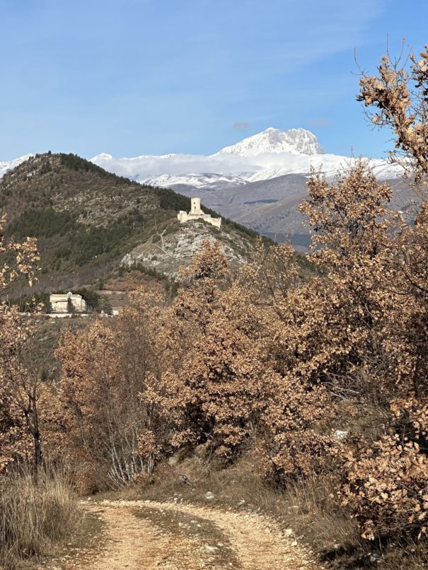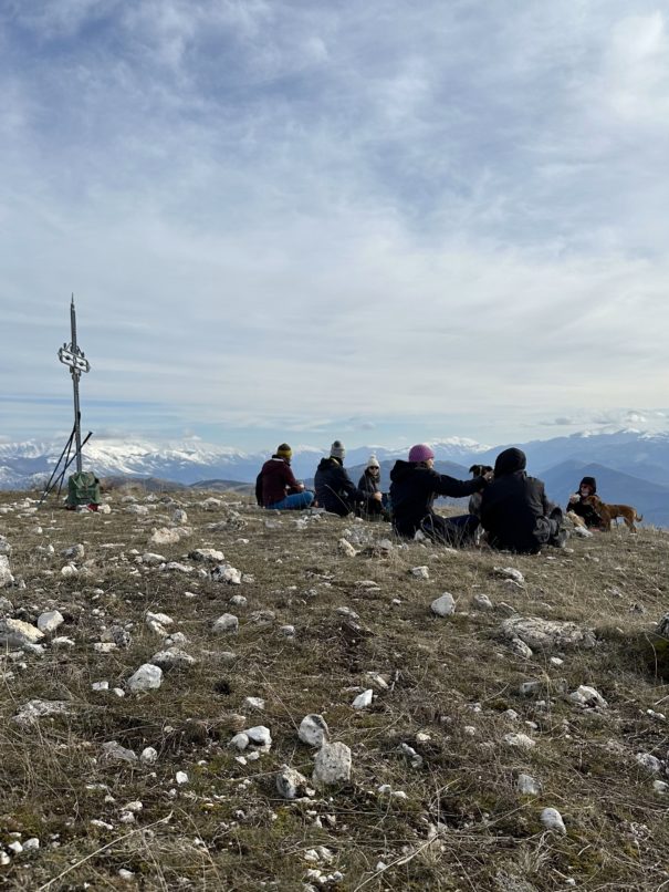Già qui il panorama è incredibile ma è solo quando arriviamo sulla vetta di Monte Offermo che il nostro sguardo si riempie di estese visuali sull’imponente massiccio del Sirente, sul Gran Sasso e sui borghi tra la Valle Subequana e la Valle dell’Aterno. Ci accompagnano i segni di presenza della grande fauna che in questi ambienti dimora stabilmente. Dai lupi ai cervi, ai caprioli sono tanti gli animali di cui riconosceremo le tracce lungo il nostro percorso.