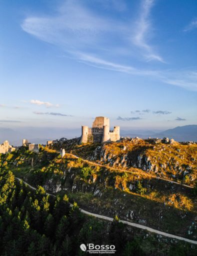 Dal crinale proseguiamo fino alla caratteristica Chiesa di Madonna della Pietà a pianta ottagonale per raggiungere infine la nostra meta, la splendida Rocca di Calascio, la roccaforte più alta di tutto l’Appennino considerata dal National Geographic uno dei castelli più belli del mondo ed esclusivo scenario di famose pellicole cinematografiche fantasy e storiche.